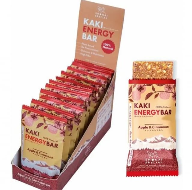 食物繊維が豊富な庄内柿をベースに、有機発芽玄米粉やナッツ、オーツなど植物由来の原材料を組み合わせ、様々な栄養素をバランス良く摂取できるナチュラルエナジーバー。